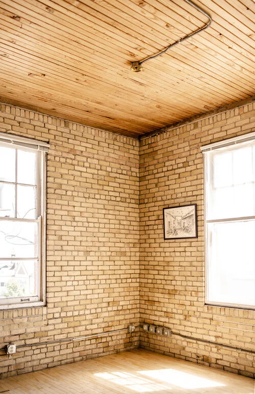 Our 15’ x 10’ freight elevator (garage-stall size) must be manually operated by our staff, who are only on-site if you schedule an elevator ride at least 48 hours in advance by emailing hi@costudiobismarck.com.